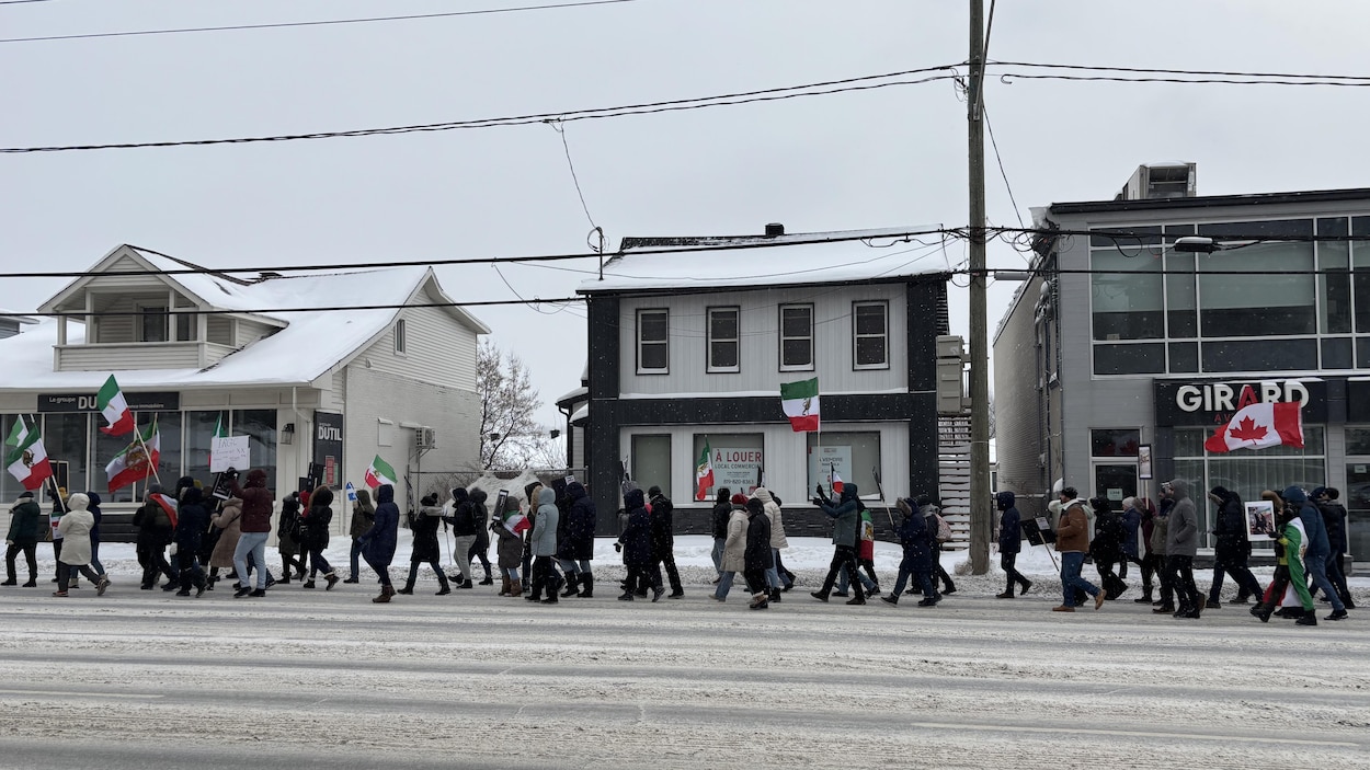 Des dizaines de personnes ont défilé dans les rues de Sherbrooke, samedi, pour manifester leur soutien envers le peuple iranien. Drapeaux de l'ancien régime monarchique en main, les manifestants ont demandé aux gouvernements occidentaux de soutenir le peuple iranien. Ils ont déploré que la situation en Iran ne soit pas suffisamment discutée dans l’espace médiatique. C’est vraiment de donner une voix à ces gens qui se font tuer parce qu’ils revendiquent un peu de liberté, un peu de vie, explique Maryam Shahidi. La femme a pris part à la marche qui a débuté à midi au centre-ville de Sherbrooke. Rappelons que, depuis décembre dernier, des manifestations ont lieu à travers l'Iran pour protester contre la chute de la monnaie iranienne. Elles se sont ensuite transformées en une vague de protestations anti-gouvernementales, résultant en une répression sanglante menée par l’Iran. Selon les sources du groupe Human Rights Activists in Iran, les manifestations auraient fait plus de 6700 morts en Iran jusqu’ici, même si le gouvernement donne un nombre moins élevé.