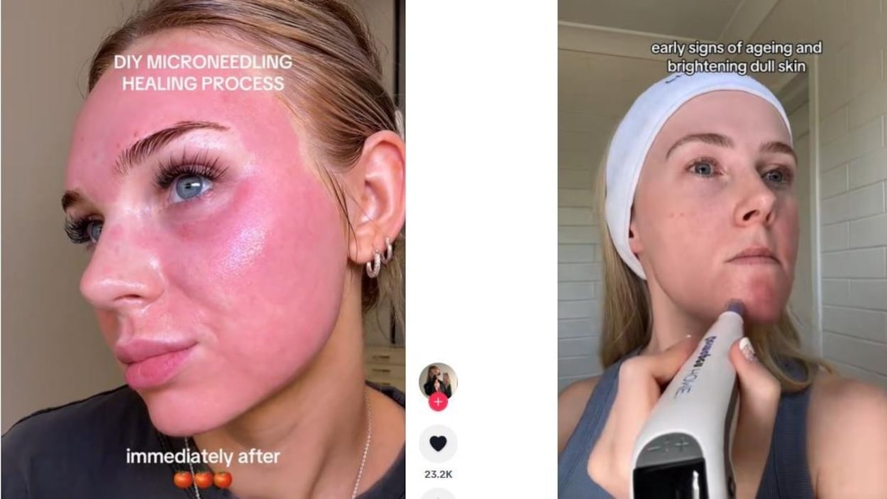 Des jeunes femmes se filment face à leur miroir. En quelques secondes, des dizaines de fines aiguilles s’enfoncent dans leur peau. Le visage rougi, gonflé, parfois sanguinolent, elles promettent un résultat éclatant dans quelques heures : pores resserrés, rides estompées. Bienvenue dans le monde du micro-aiguillage, une technique esthétique devenue virale sur les réseaux sociaux. Utilisée par des professionnels de la santé ou de l’esthétique, elle peut donner d’excellents résultats, mais, sans encadrement, les conséquences peuvent être irréversibles. Sur TikTok, tout ce qui est lié au mot-clic #microneedling cumule près de 2 milliards de vues. Face caméra, stylo en main, des créateurs de contenu vantent une peau repulpée, un teint lisse, un air rajeuni.En dermatologie, le micro-aiguillage est utilisé pour stimuler la production de collagène et d'élastine, favorisant la fermeté de la peau. Il peut atténuer efficacement les cicatrices d'acné, les rides fines et les vergetures en régénérant les tissus cutanés. Mais rares sont les vidéos qui mentionnent les risques. Beaucoup de jeunes reproduisent la technique à la maison, sans supervision ni environnement stérile. Et lorsque le soin est mal réalisé, ou sur une peau inadaptée à celui-ci, les cicatrices ne s’effacent plus. Vickie, 30 ans, qui souffre d'acné kystique, en a fait l’amère expérience. Séduite par la promesse d’une peau plus lisse, elle a réalisé elle-même son soin de micro-aiguillage. J’avais cru ce qu'on me montrait, le teint plus lumineux, les pores raffinés, confie-t-elle. Huit ans plus tard, sa peau reste extrêmement sensible selon les situations. Ça a vraiment fragilisé ma peau. Même encore aujourd'hui, elle est très très sensible au soleil, l'eau saline, les vapeurs de spa [...]. Je deviens très très rouge, très irritée, je me gratte le visage [...]. J’aurais aimé qu’on me mette en garde.