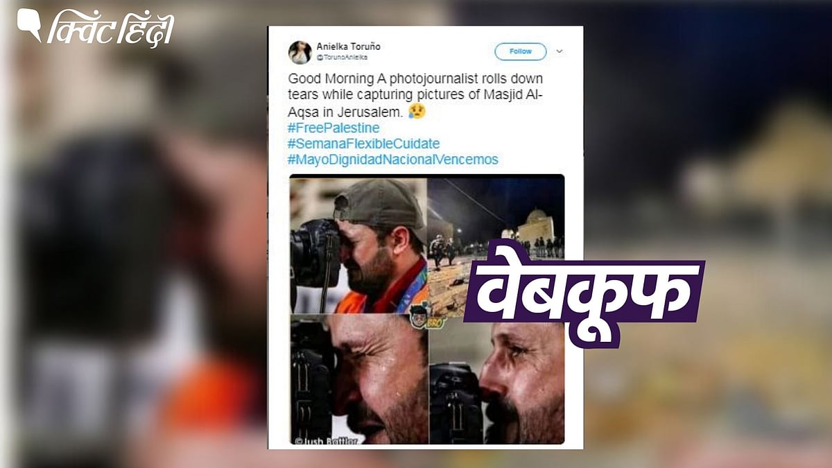 इजरायल और फिलिस्तीन के बीच चल रहे हालिया विवाद से जोड़कर, तस्वीरों का एक कोलाज शेयर किया जा रहा है. तस्वीरों में एक जर्नलिस्ट भावुक होता दिख रहा है. दावा किया जा रहा है कि जेरूसलम में अल-अक्सा मस्जिद की तस्वीरों खींचते हुए ये जर्नलिस्ट तब भावुक हुआ था जब 7 मई को इजरायल के जेरुसलम में पुलिस और फिलिस्तीनियों के बीच हिंसक झड़प हुई.हालांकि, हमने पाया कि इराकी फोटोग्राफर की तस्वीर 2019 की है. जब एएफसी एशिया कप में उसके देश की टीम हारने लगी थी.दावाइस कोलाज के साथ शेयर किए जा रहे दावे में लिखा जा रहा है: ''जेरूसलम में अल-अक्सा मस्जिद की तस्वीरें लेते समय रोता जर्नलिस्ट''.पोस्ट का आर्काइव देखने के लिए यहां क्लिक करें(सोर्स: स्क्रीनशॉट/फेसबुक)कई लोगों ने इस कोलाज को फेसबुक और ट्विटर पर इसी दावे के साथ शेयर किया है. इनके आर्काइव आप यहां, यहां और यहां देख सकते हैं.पड़ताल में हमने क्या पायाहमने फोटोग्राफर की फोटो को रिवर्स इमेज सर्च किया. हमें एएफसी एशियन कप का जनवरी 2019 में किया गया एक फेसबुक पोस्ट मिला.इस पोस्ट के कैप्शन में बताया गया था कि इराकी फोटोग्राफर उस समय भावुक हो गया जब उसकी टीम कतर से 10 वें राउंड में 1-0 से हार गई.हमें Al Jazeera के अरबी वर्टिकल का जनवरी 2019 में पब्लिश एक आर्टिकल मिला. जिसका हिंदी अनुवाद है कि वायरल फोटो में दिख रहा शख्स इराकी फुटबॉल एसोसिएशन का फोटोग्राफर मुहम्मद अल-अज्जावी है.फोटोग्राफर मुहम्मद अल-अज्जावीफोटोग्राफर मुहम्मद अल-अज्जावी(सोर्स: स्क्रीनशॉट/वेबसाइट)क्विंट की वेबकूफ टीम ने 2019 में भी इस वायरल फोटो की पड़ताल की थी. तब इसे इस झूठे दावे से शेयर किया जा रहा था कि महेंद्र सिंह धोनी के वर्ल्ड कप सेमीफाइनल में रन आउट होने पर फोटोग्राफर रो पड़ा था.अल-अक्सा मस्जिद की फोटो कब की है?फोटो को रिवर्स इमेज सर्च करने पर हमें पता चला कि ये फोटो 7 मई को तब खींची गई थी जब इजरायल की फोर्स जेरूसलम में अल-अक्सा मस्जिद के अंदर घुस गई थी. फोटो का क्रेडिट Anadolu Agency के मुस्तफा अलखरूफ को दिया गया है.फोटो के कैप्शन में लिखा है "इजरायल के सुरक्षा बलों को 7 मई 2021 को जेरूसलम की अल-अक्सा मस्जिद में घुसते हुए देखा जा सकता है, जहां इबादत के दौरान मुस्लिमों पर स्टन ग्रेनेड फेंके गए.''ये फोटो 7 मई की है(सोर्स: स्क्रीनशॉट/वेबसाइट)C...More Related News