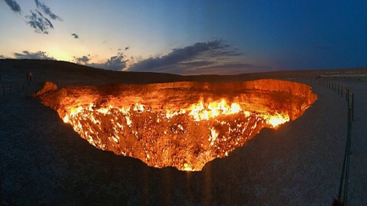 तुर्कमेनिस्तान में, एक प्राकृतिक गैस क्रेटर ने दशकों से वैज्ञानिकों और लोगों को कई दशकों से हैरान कर रखा है. दरवाजा क्रेटर, जिसे 'डोर टू हेल' यानी नरक के द्वार के नाम से जाना जाता है, वह 1971 से लगातार जल रहा है. यह एक प्रसिद्ध टूरिस्ट स्पॉट और जियोलॉजिकल फेनोमेना बन गया है. इसे बुझाने के प्रयासों के बावजूद, काराकुम रेगिस्तान में आग का ये गड्ढा कभी बुझा ही नहीं.