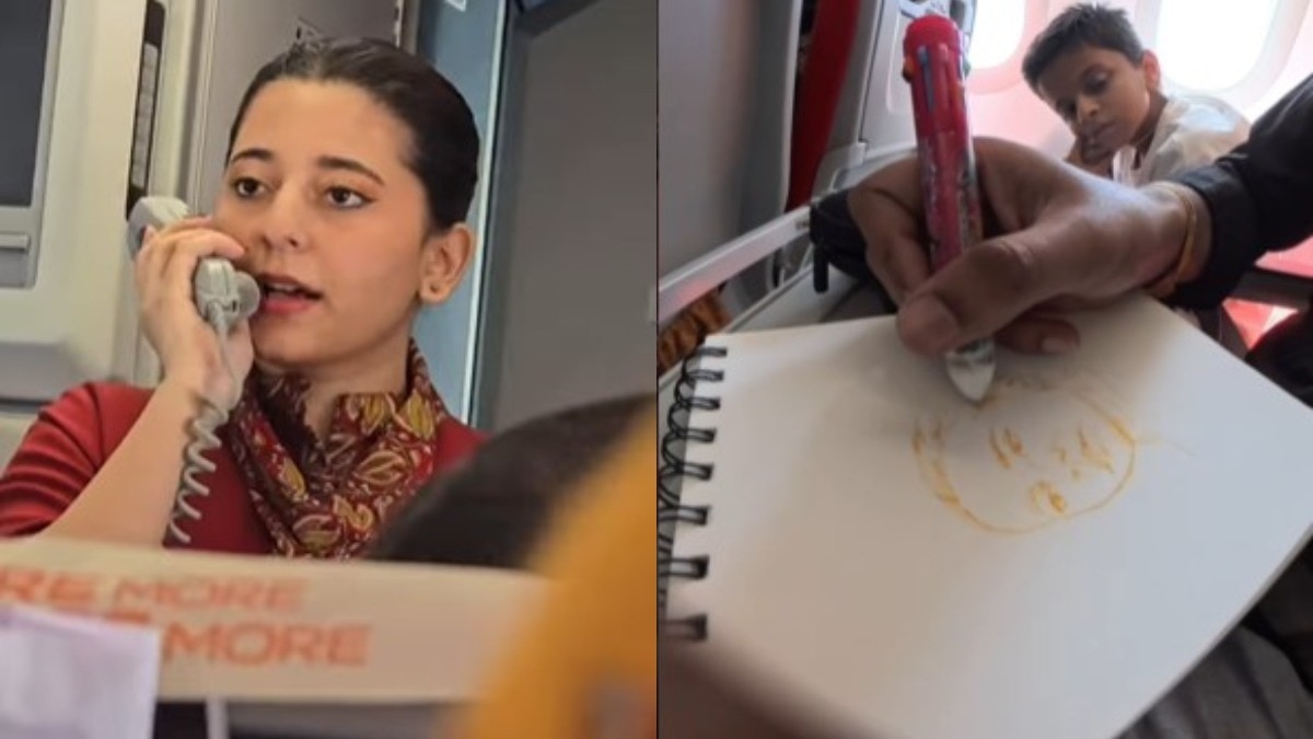 वीडियो में आगे देखा जा सकता है कि जब एयर होस्टेस अपने काम में बिजी होती है, उसी दौरान यह शख्स अपनी कला के जरिए उसकी तस्वीर को लगभग पूरा कर लेता है. स्केच बनाते समय उसकी एकाग्रता और लगन साफ नजर आती है, जो इस पूरे पल को और खास बना देती है.