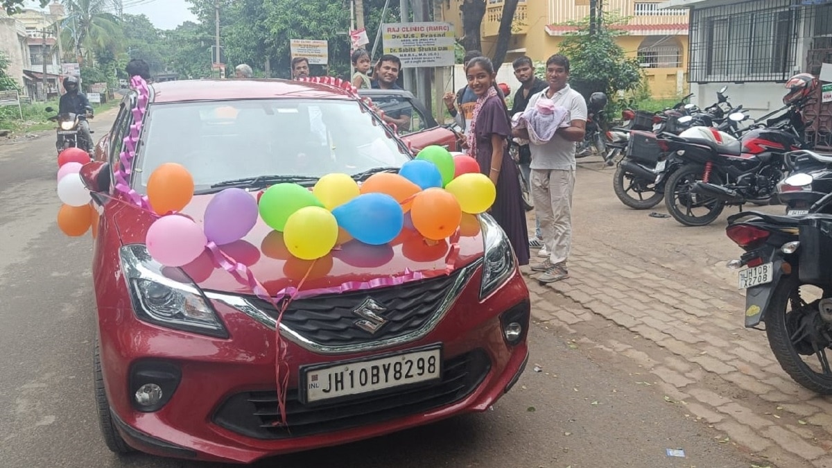 दरअसल, धनबाद के पुटकी में अशोक कुमार की पत्नी प्रिया ने बेटी को जन्म दिया. इससे पूरे परिवार में खुशी छा गई. बच्ची के स्वागत में घर में जोरदार तैयारियां की गईं. बेटी होने की खुशी में पिता ने पूरे अस्पताल में मिठाई बांटी. इसके बाद पत्नी और बेटी को घर लाने के लिए भी खास इंतजाम किए. अशोक ने अपनी कार को कलरफुल फूलों और बैलून से सजवाया और गाजे-बाजे के साथ अस्पताल से पत्नी और बेटी को लेकर घर आया.