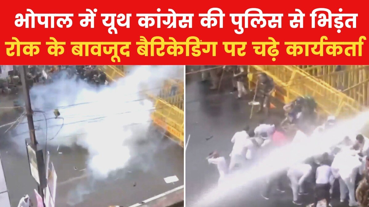 मध्य प्रदेश के भोपाल में यूथ कांग्रेस के कार्यकर्ताओं ने बढ़ती बेरोजगारी और नर्सिंग घोटाले के खिलाफ प्रदर्शन किया. पुलिस ने प्रदर्शनकारियों को रोकने के लिए आंसू गैस के गोले दागे और वाटर कैनन का इस्तेमाल किया. यूथ कांग्रेस ने बेरोजगारी के मुद्दे पर मोहन यादव सरकार को घेरने की कोशिश की.