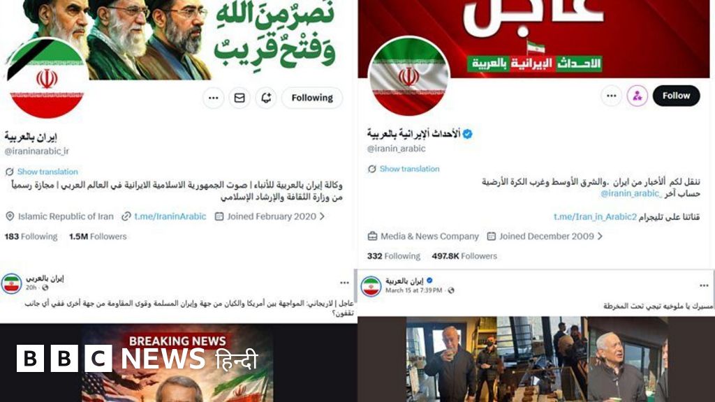 इनमें 'ईरान इन अरेबिक ' और ' ईरान न्यूज़ ' जैसे नामों से चलने वाले अकाउंट भी शामिल हैं.