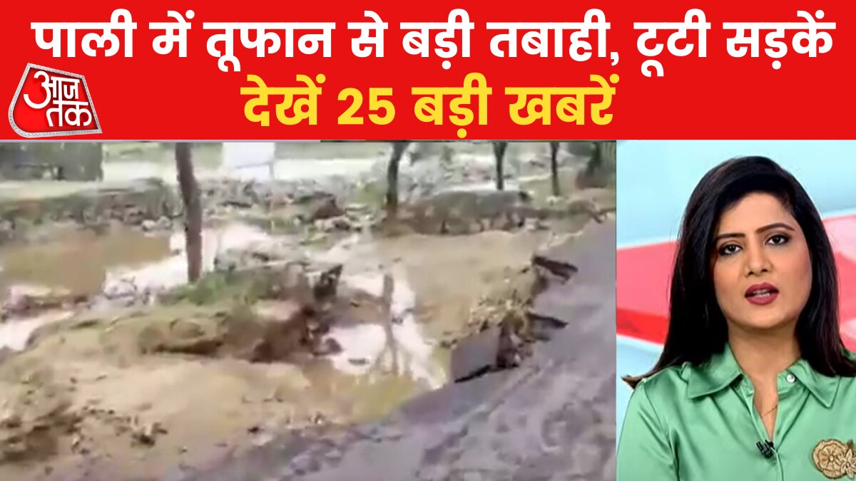 राजस्थान के पाली में भारी बारिश लाई तबाही, टूटी सड़कें, देखें बड़ी खबरें