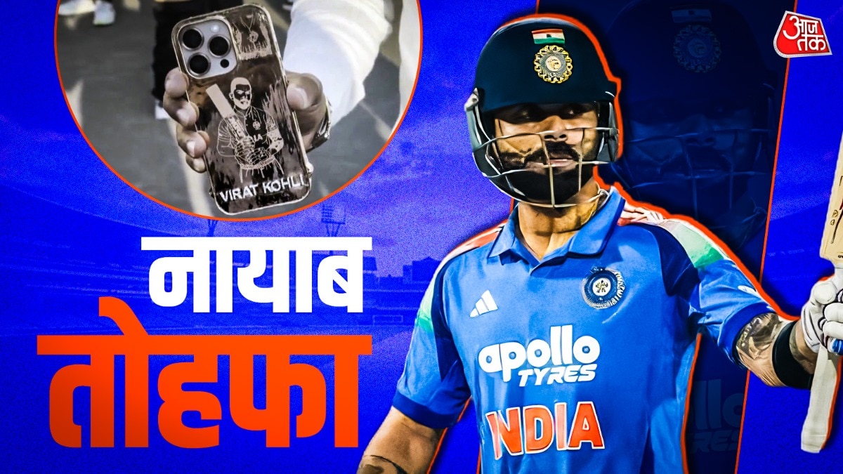 राजकोट में बुधवार को इस सीरीज का दूसरा मैच खेला गया. इस मुकाबले से पहले एक फैन को खास iPhone कवर के साथ देखा गया, जिस पर विराट कोहली की तस्वीर उकेरी गई थी. शुरुआत में इस कवर को लेकर ज्यादा जानकारी नहीं थी, लेकिन बाद में पता चला कि यह सोने का iPhone कवर है, जिस पर विराट कोहली की कैरिकेचर उभरी हुई है.