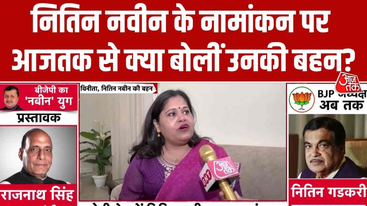 भारतीय जनता पार्टी के राष्ट्रीय अध्यक्ष पद के लिए चुनाव होने वाला है. कार्यकारिणी अध्यक्ष नितिन नबीन ने आज इस पद के लिए अपना नामांकन दाखिल किया. इस घोषणा के बाद दिल्ली में भाजपा नेताओं और कार्यकर्ताओं के बीच तेज़ हलचल देखने को मिली है. नितिन नबीन की बहन ने आजतक से बातचीत में क्या बताया? देखें वीडियो.