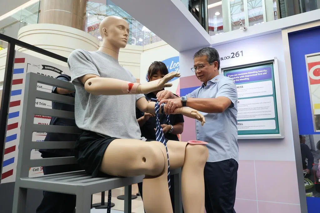 新运动推介和相关路演系列活动在碧山第八站商场举行。当局通过互动展示和趣味游戏,引导民众了解在面对恐袭风险时应该怎么做,共同确保新加坡安全。现场也设急救工作坊,由民防人员向民众传授实用的应急技能,如用领带与原子笔自制止血带,以及如何正确施展心肺复苏术等。