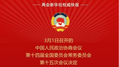 3月1日召開的中國人民政治協商會議第十四屆全國委員會常務委員會第十五次會議決定:中國人民政治協商會議第十四屆全國委員會第四次會議於2026年3月4日在北京召開。