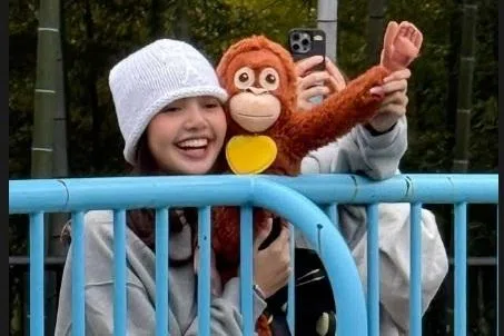 韩国天团Blackpink成员Lisa也被Punch圈粉了,她近日到日本出席美容品牌活动后,带着同款红毛猩猩玩偶去见Punch。她在instagram限时动态分享照片,当中可见她拿着玩偶,还开心地露出了“姨母笑”(网络用语,指不自觉地流露出的一种慈爱宠溺,带幸福感的微笑)。