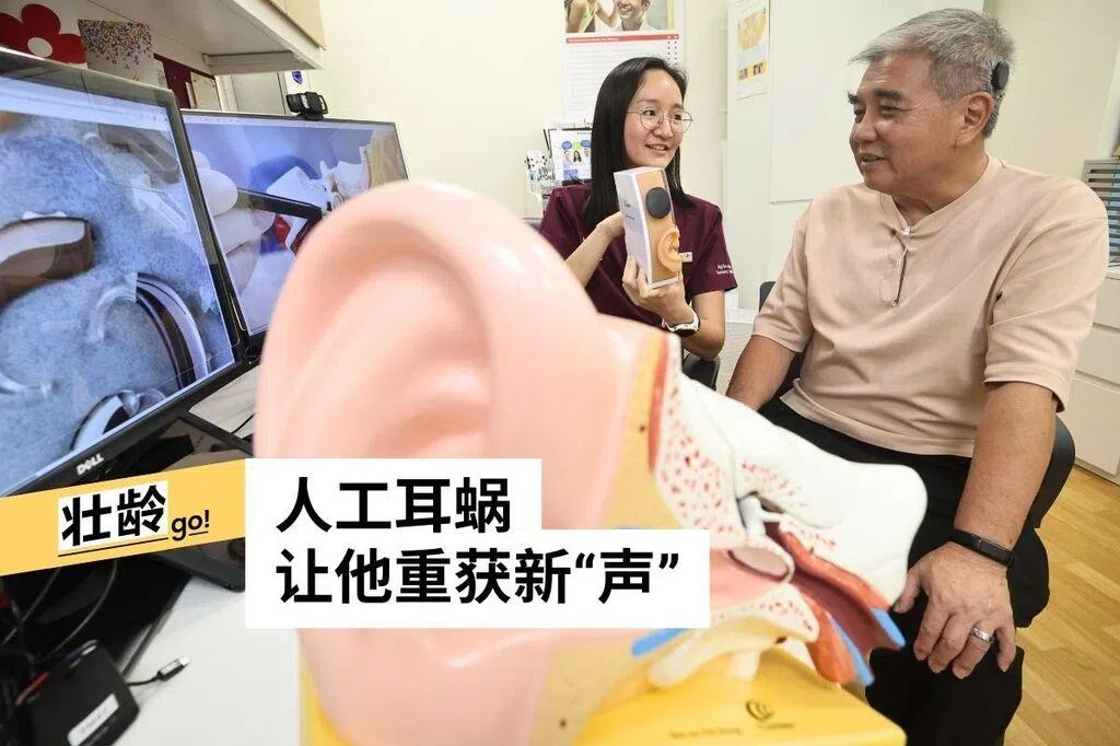 符阳强去年9月完成耳蜗植入手术。做决定之前,他犹豫过,也为费用担心过。他在黄廷方综合医院接受《联合早报》访问时说,听觉减弱分两个阶段。最初,他突然觉得旁人说话的声音变小了,“好像大家都离我很远。”他去做全身检查,却找不出原因。医生判断或许是自然退化,建议先配戴普通助听器。直到2024年,他的左耳几乎完全听不到;再次检查后,医生坦言听力已无法恢复。那一刻,他开始焦虑:日子怎么过?会议怎么开?社区活动还能参与吗?