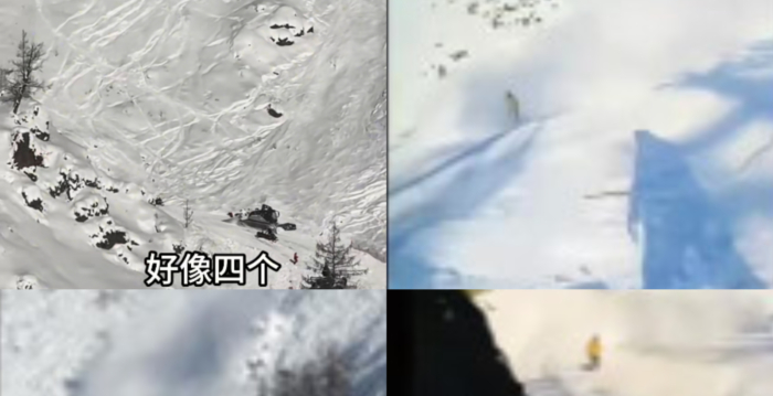 据视频区多位网友发布的视频截图显示,雪崩发生时,至少有5到6人正站在雪崩下方。