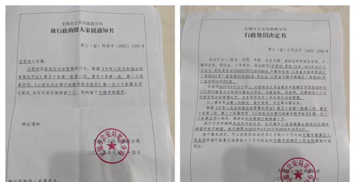 无锡沈爱斌维权再次被拘留