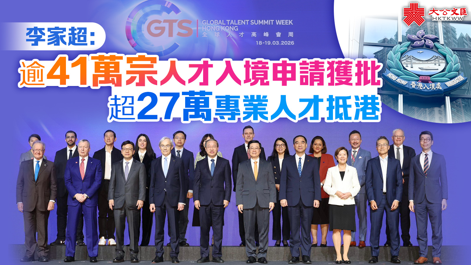 大公文匯全媒體報道,今日(18日)早上,行政長官李家超出席第二屆全球人才高峰會周國際人才論壇,歡迎約7000位來自世界各地的嘉賓齊集香港這個國際人才樞紐,共同參與這項盛事。今年論壇以「匯聚全球智慧」為主題,首次舉辦九項與人才及人力資源相關的衛星活動,包括區域會議、招聘會及企業頒獎典禮等。 李家超在社交平台發文指,他致開幕辭時表示,引才及留才是全球經濟策略及公共政策的關鍵,競爭力取決於人才的知識、創造力及適應力,為應對這項挑戰,香港目標清晰、決心堅定。在「一國兩制」下,香港既有祖國的強力支持,亦能維繫廣泛的國際網絡,這獨特優勢使香港在融入國家高質量發展的同時,始終保持開放,維持與全球聯通的經濟體系。與此同時,香港正加速推動北部都會區發展成為國際創科中心,並深化與大灣區其他城市的合作,這將為跨境協作及人才流動帶來巨大機遇。 李家超指出,香港的努力得到廣泛認同。除了是全球唯一擁有五所世界百強大學的城市外,香港在國際管理發展學院《2025年世界人才排名》亦從第九躍升至第四,位居亞洲首位,反映全球人才對香港投下信心一票。截至本年2月底,香港已透過各項人才入境計劃批准超過41萬宗申請,有超過27萬名專業人才已抵港。