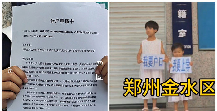 刘红霞19日告诉大纪元记者,“户籍室工作人员说是郑州市政府下文件不让分户,不让分户我两个孩子怎么上学?”她要求郑州市金水区政府给出答复。