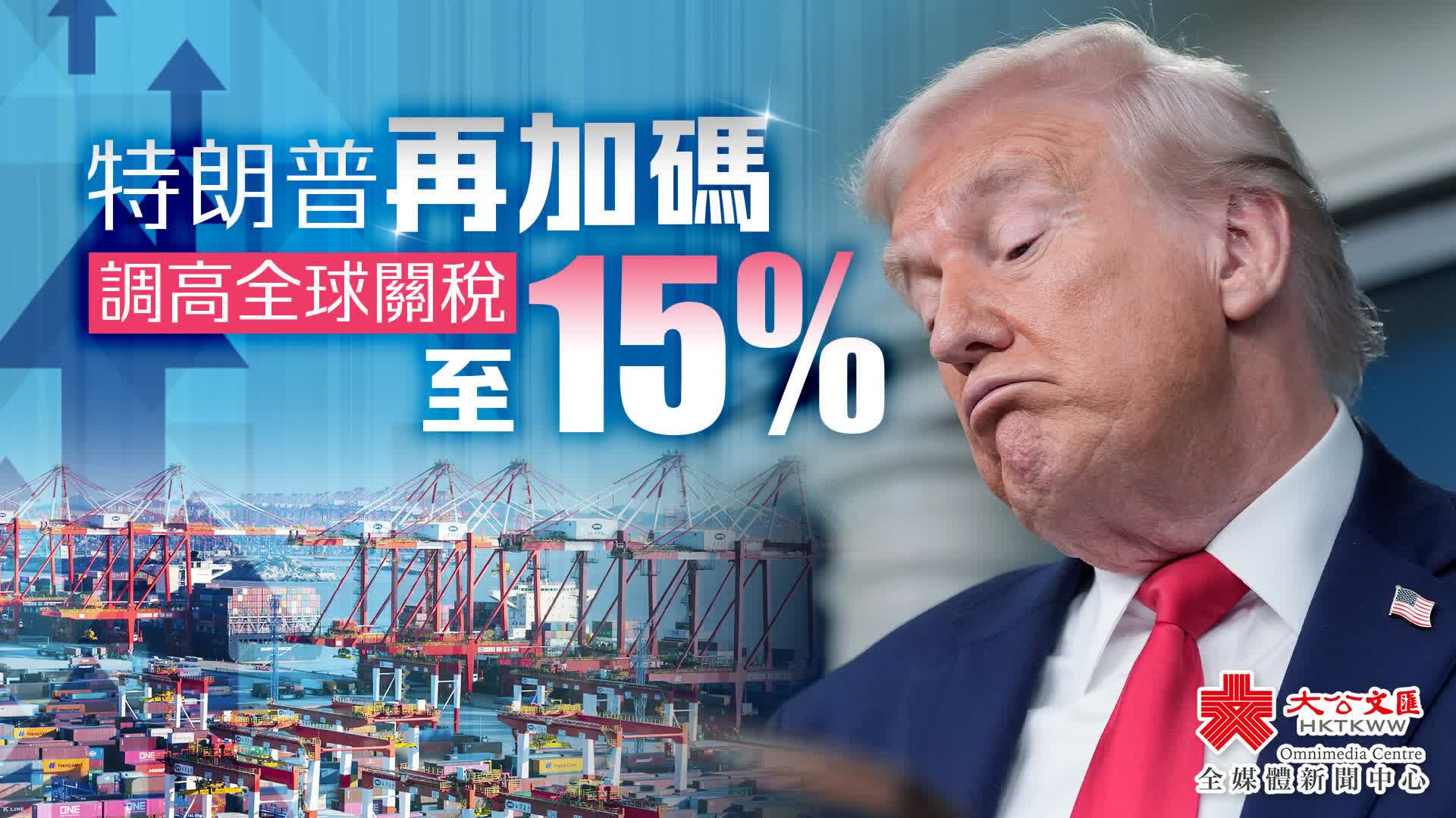 特朗普再加碼 調高全球關稅至15%