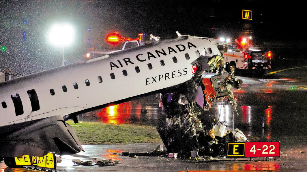 大公報綜合報道,當地時間22日晚,加航快捷航空8646航班在美國紐約拉瓜迪亞機場降落時撞上一輛消防車,造成客機兩名飛行員死亡、41人受傷。事發機場緊急關閉,數百個航班被取消。空中交通管制錄音顯示,空管員事發時手忙腳亂,先是批准消防車穿越跑道,又連聲叫停,但為時已晚,只能承認自己「搞砸了」。具體事故原因仍在調查中。分析人士指出,美國空管人手不足無疑增加了安全風險。 當地時間22日晚11時40分左右,加航快捷航空一架龐巴迪CRJ-900客機在紐約拉瓜迪亞機場降落時,以每小時39公里的速度撞上紐約及新澤西港務局的一輛消防車。現場照片顯示,飛機頭部翹起並嚴重損毀,如同遭「斬首」;消防車亦翻倒在地,慘不忍睹。港務局負責人加西亞表示,這架客機由加拿大爵士航空公司代表加航運營,載着72名乘客和4名機組人員從加拿大蒙特利爾飛往紐約;消防車上有兩人,事發時正趕往另一宗事故現場,涉及美聯航一架客機防冰警示燈亮起、機艙內傳出異味。此次事故造成客機兩名飛行員死亡,另有41人受傷,傷者包括消防車上的兩人。加西亞說,32名傷者已出院,餘下的9人傷勢嚴重。 拉瓜迪亞機場在事故發生後緊急關閉,所有航班暫停起降,預計至少到美東時間23日下午2時(本港時間24日凌晨2時)才會重新開放。該機場是美國東北部重要航空樞紐,主要服務於美國國內和美加之間的航班,緊急關閉已導致超過500個航班取消,影響數萬人。部分旅客被告知航班改為從肯尼迪國際機場起飛。紐約都會區的另一座機場紐瓦克機場23日上午亦發生事故,塔台電梯冒出煙霧,疑似起火,不得不疏散人員並暫停航班。