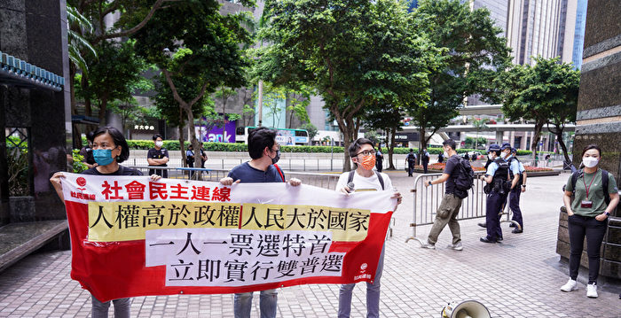 5月8日,香港举行第6届行政长官选举,社会民主连线(社民连)成员原本计划前往湾仔会展中心票站外抗议,不料遭到警方截查,他们只能游行到中环广场楼下,并于原地朗读声明。