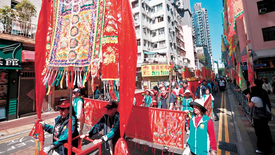 香港保留不少中華傳統文化,成為推動「無處不旅遊」的特色資源。鴨脷洲洪聖古廟昨日舉行接神儀式,為一連半個月的2026鴨脷洲洪聖傳統文化節揭開序幕。儀式沿街巡行,鑼鼓喧天,吸引不少街坊及旅客駐足觀賞。主辦單位估計,活動除本地居民外,海外旅客佔參與者約兩成,冀今年參加人次能錄得雙位數增長,並透過節慶推廣漁民風俗及社區文化,吸引年輕一代接觸與承傳。有英國旅客讚香港保留大量傳統文化,很難得,「英國丟失了很多本土傳統,而香港依舊保留着大量傳統文化,這亦是我喜歡這座城市的原因,也會推薦朋友來香港遊玩時體驗。」