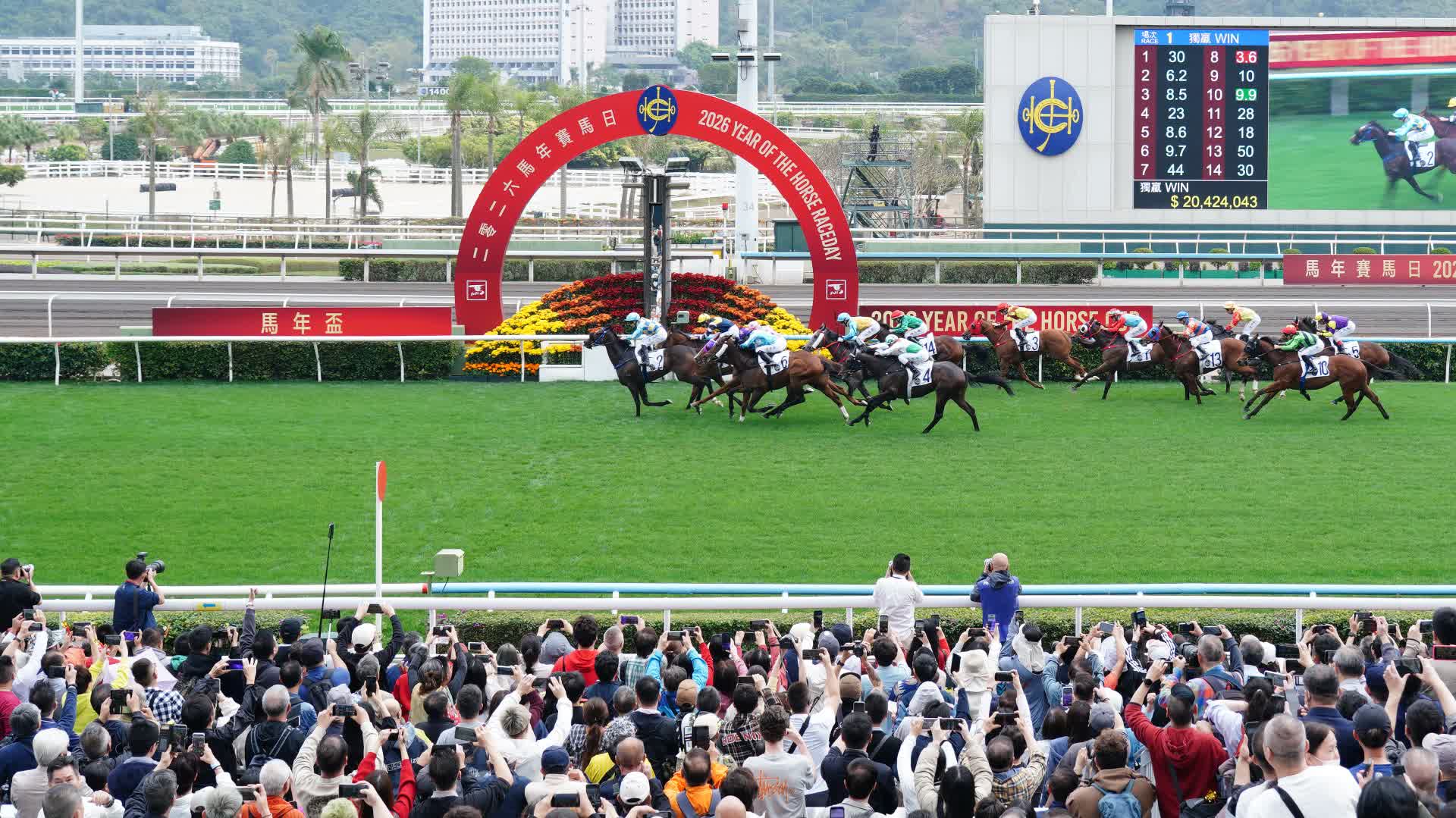 今年適逢馬年,沙田馬場於今日(19日)大年初三舉行新春特別盛事「馬年賽馬日」,並將傳統賀歲盃命名為「馬年盃」。今日上午舉行的「馬年盃」首場賽事,由2號「金快飛飛」奪得冠軍。
