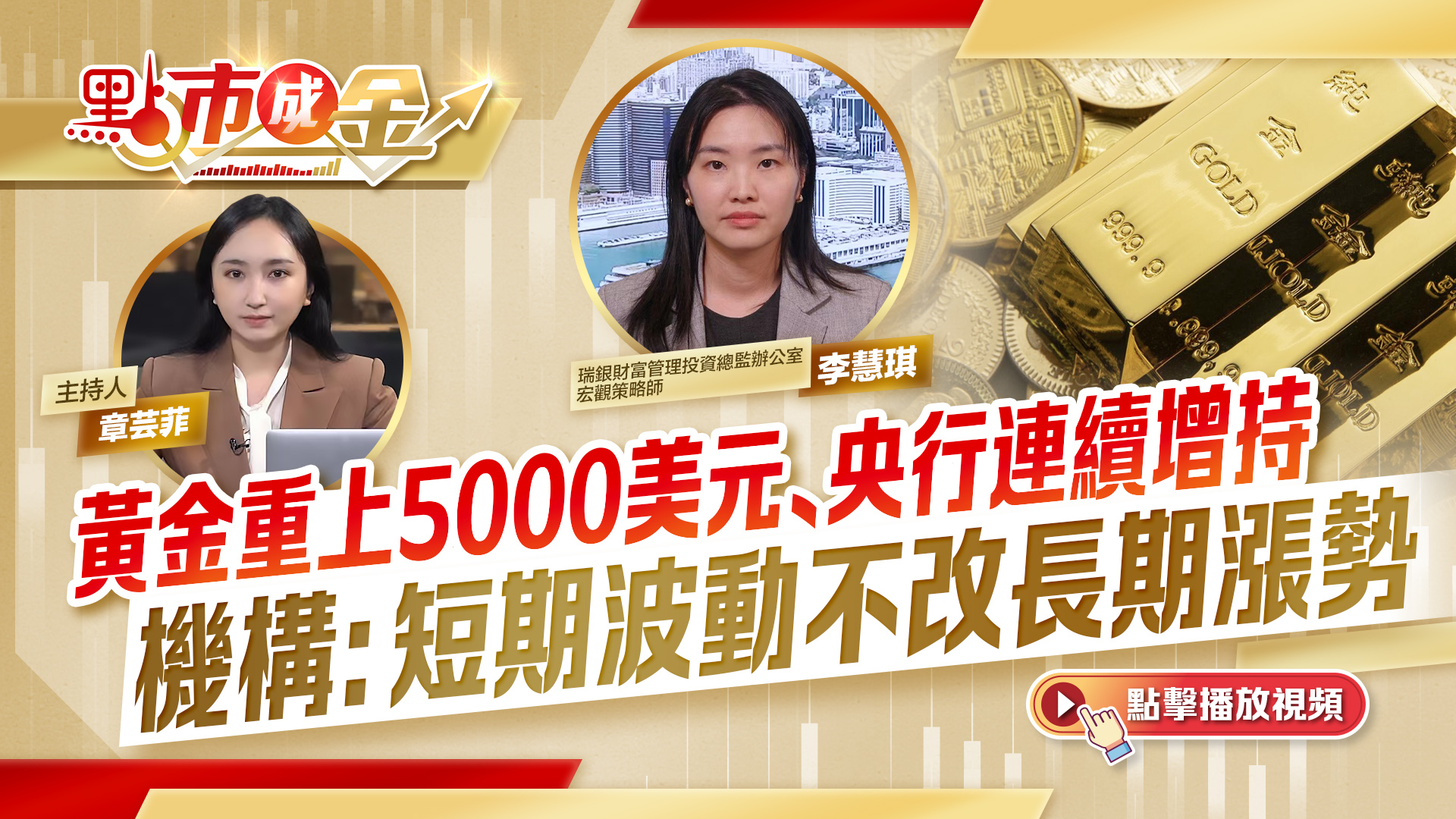 (有片)點市成金|黃金重上5000美元 央行連續增持 機構:短期波動不改長期漲勢
