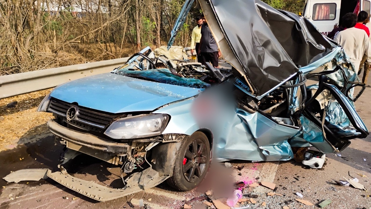 The accident took place on the Mumbai-bound lane near Khalapur. According to preliminary information, a Volkswagen Polo travelling from Pune to Mumbai was allegedly at high speed when the driver lost control near Khopoli. The vehicle overturned multiple times, leaving it completely mangled.