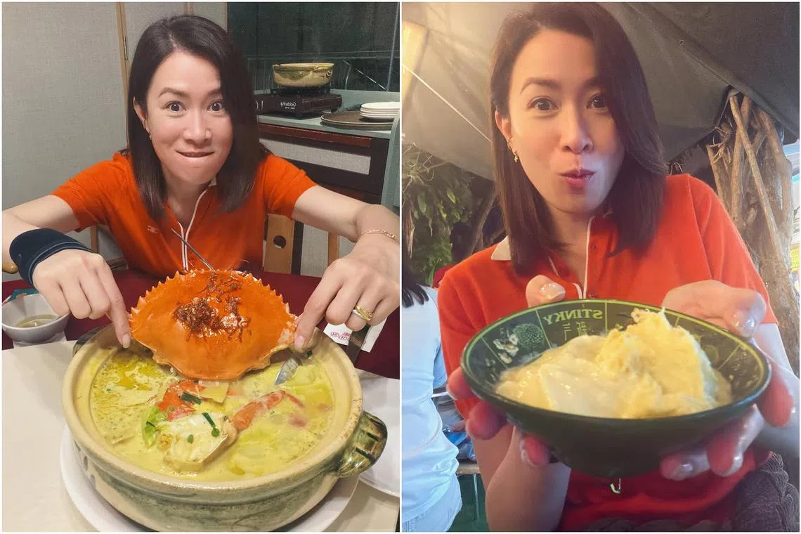 The 50-year-old star shared on Instagram on March 23 photos of herself tucking into durian, chilli crab and black pepper crab.