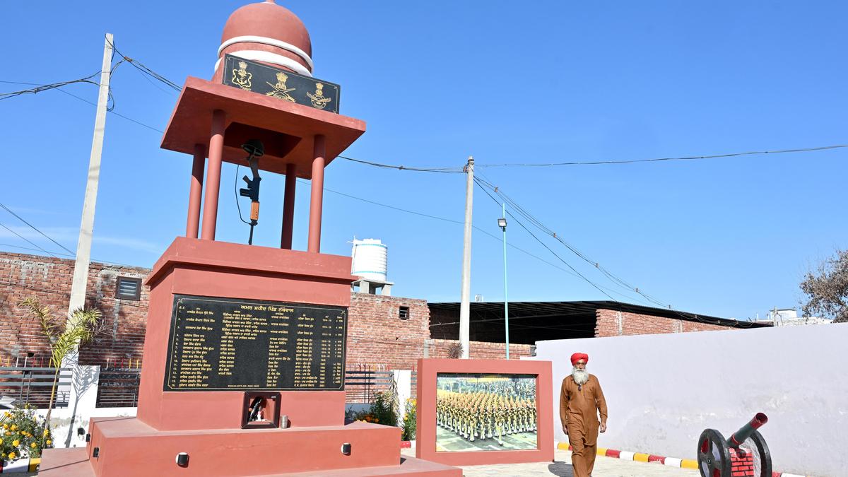 The war memorial at Nathowal village, at which veterans are considering a portrait museum to encourage young men to join the Indian Army. | Photo Credit: Shashi Shekhar Kashyap