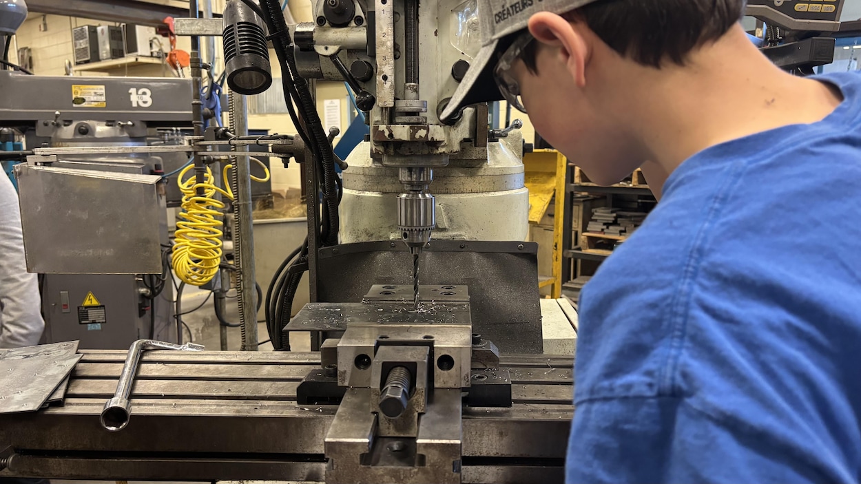 La semaine de relâche permet de profiter de l'extérieur ou de décrocher du quotidien, mais pour certains motivés, c'est l'occasion d'apprendre une nouvelle formation technique. Le Camp Usinage offre à des jeunes du secondaire la chance d'apprendre le métier de machiniste, qui est derrière beaucoup d'objets de notre quotidien. Vous avez pris l'autobus ou votre auto pour venir ici?, questionne l'enseignant du Centre de formation professionnelle 24-juin, Francis Côté. Bien, il y a des machinistes derrière tout ça. Il est impossible d'échapper aux fruits du travail des machinistes. Le camp d'une semaine est mis sur pied par l'organisme à but non lucratif PERFORM. Ce comité sectoriel travaille sur les besoins de main-d’œuvre d'entreprises qui en font la demande. Les élèves toucheront à différentes machines, certaines plus traditionnelles, d'autres plus technologiques, et visiteront aussi une entreprise de la région. La mission de ces camps, c'est de faire découvrir le métier qui est très peu connu et reconnu au travers de la province, explique le gestionnaire des projets de formation pour l'organisme, Yves Foster.