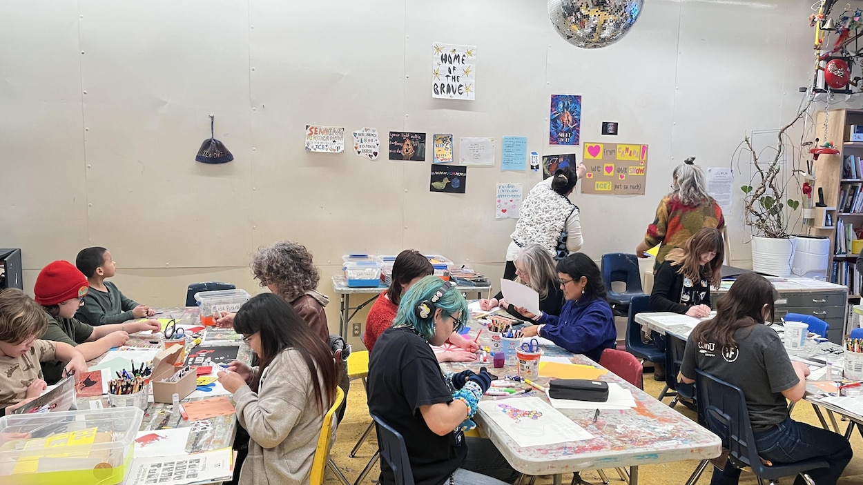 Un studio communautaire, à Winnipeg, a accueilli des personnes pour créer des œuvres d'art en soutien aux résidents de Minneapolis. Ces derniers ont perdu deux personnes : Renée Good et Alex Pretti, qui ont été tuées, le mois dernier, par les agents de la police fédérale de l'immigration (ICE).
