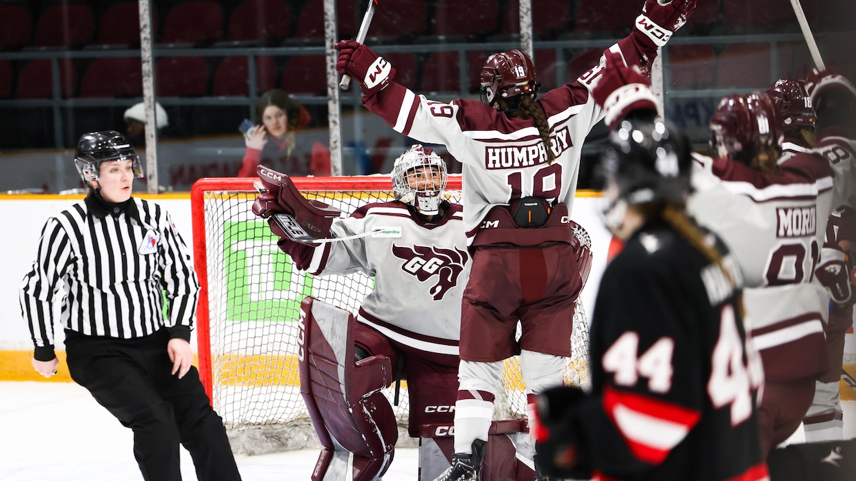 Les Gee-Gees de l’Université d’Ottawa s’apprêtent à participer au Championnat national en hockey féminin, à Waterloo. Qualifiées grâce à leur médaille d’argent remportée lors des récentes séries en Ontario dans une finale perdue contre Guelph, les joueuses se pointent au tournoi sans aucune pression. On arrive dans l'optique de prouver que la Ligue de l'Ontario est une bonne ligue [...] On arrive avec la tête haute du parcours qu'on a eu en séries, lance la défenseuse Maëlle Laplante, désireuse de prouver que son équipe mérite sa place, même sans être championne. Les Gee-Gees ont remporté leurs séries contre Toronto, puis Laurier, dans un match ultime disputé en prolongation. On doit voir les nationaux juste comme une opportunité de continuer ce qu'on a si bien fait. On est une équipe qui fonctionne super bien sous pression, croit la gardienne Clara Génier. La défenseuse Maëlle Laplante a récolté 17 passes en 24 rencontres cette saison. Photo : Greg Mason / Gee-Gees de l'Université d'Ottawa