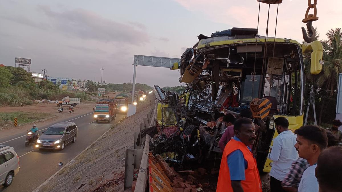 Bus driver, one passenger killed after private bus collides with lorry in Tiruchi