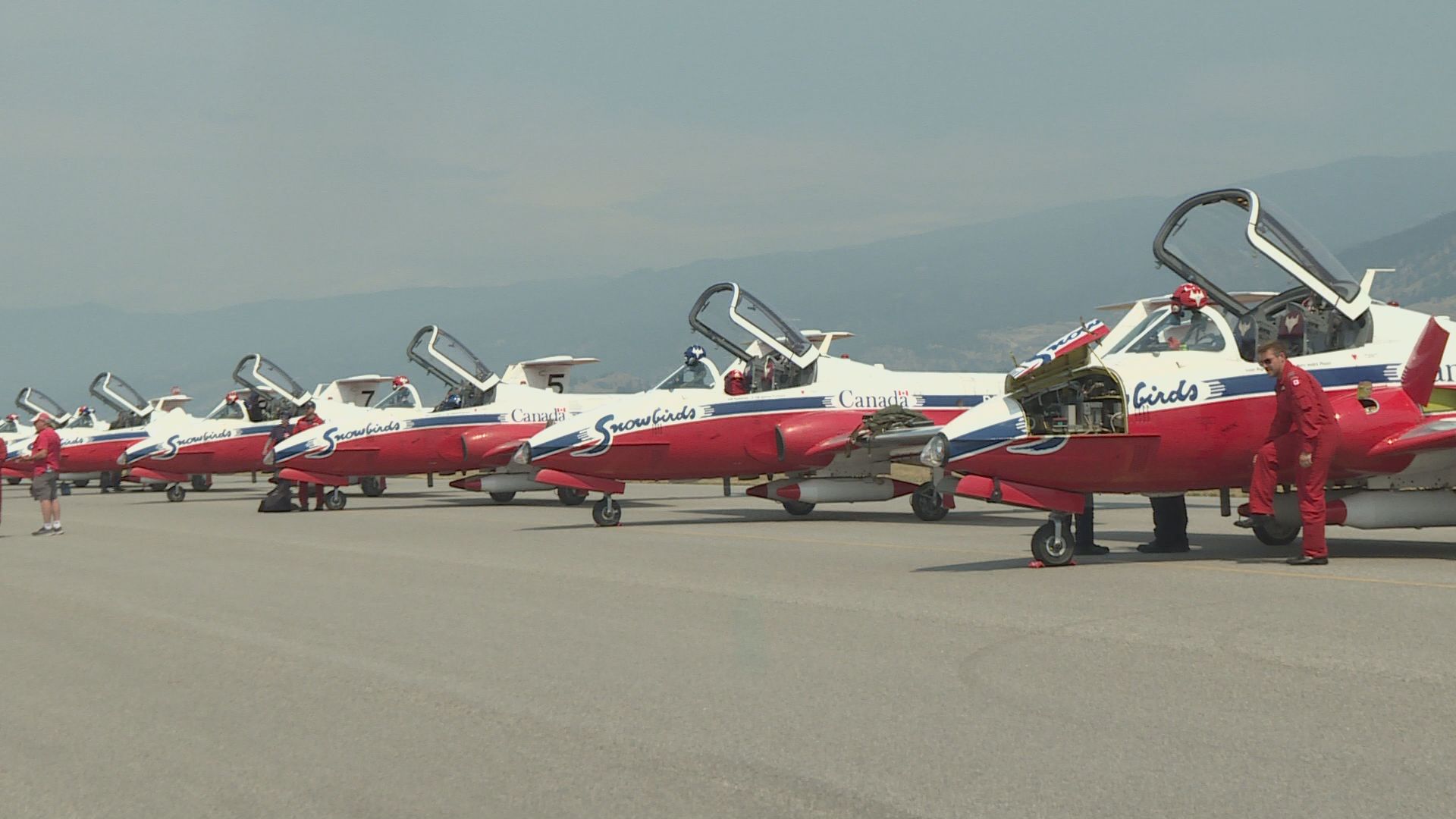 The Snowbirds had a hazy landing Monday morning due to a fire burning in the South Okanagan. The smoke greatly affects what type of show they can offer and how many tricks they can do.