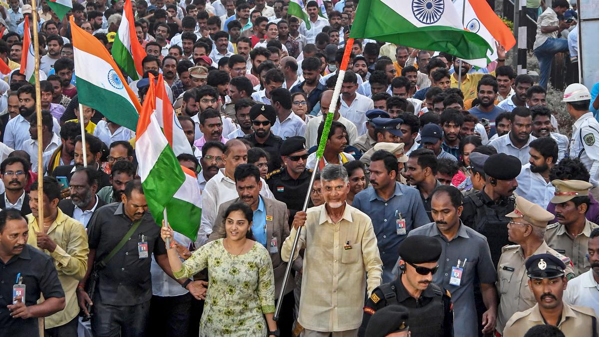 Hundreds of people joined TDP's 4km walk on Vizag's Beach Road to celebrate Independence Day. Led by N. Chandrababu Naidu, the walk began at R.K Beach and ended at Park Hotel Junction. Supporters from Uttarandhra, Vizianagaram, Srikakulam, East Godavari, and Anakapalli regions were present. V. Anitha said the 'Vision 2047' document will be a guide for the party workers. Traffic snarls were reported due to the diversion. TDP's walk celebrated Indep. Day, saw Naidu lead supporters from across the State, and caused traffic snarls.