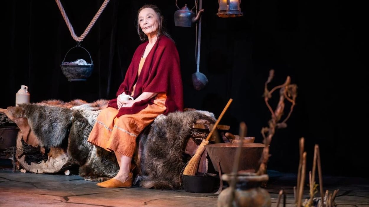 Après des passages remarqués ces derniers temps au cinéma (dans Killers of the Flower Moon, de Martin Scorsese) et dans les séries Three Pines et Echo, où elle joue le rôle de Chula, Tantoo Cardinal revient au théâtre dans Witch, sur la scène de Soulpepper, à Toronto. Tout part d’un fait divers : au début du XVIIe siècle, Elizabeth Sawyer est accusée de sorcellerie dans la localité d’Edmonton, au nord de Londres. Son procès fait l’objet d’une attention immense de la part de la population locale. Quelques mois après son exécution, en avril 1621, trois auteurs écrivent une pièce assez avant-gardiste pour l’époque, intitulée The Witch of Edmonton. Elizabeth Sawyer y est dépeinte comme une personne victime de la cruauté des hommes. Nicholas Eddie (à gauche) et Tantoo Cardinal (à droite) dans la pièce « Witch », présentée au théâtre Soulpepper.