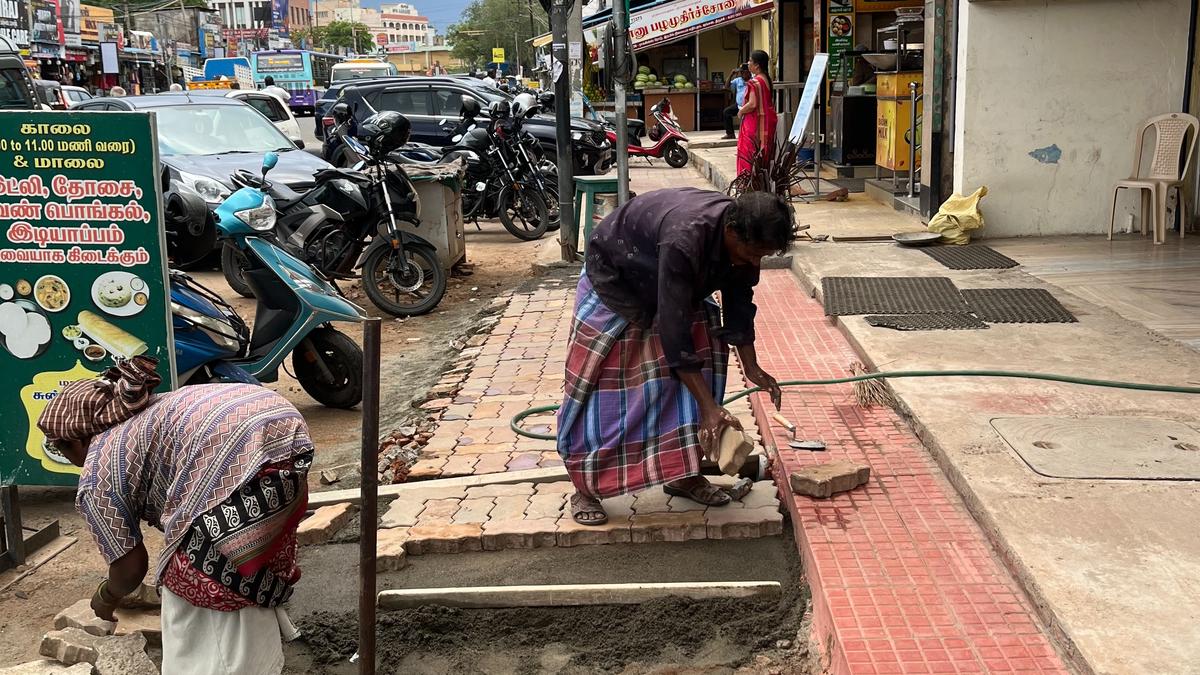 Traders encroaching public space on Rockins Road in Tiruchi raise concerns among motorists, complicating vehicle movement.