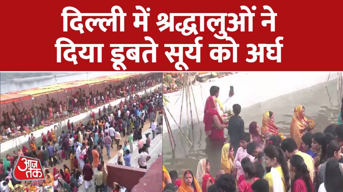 Delhi में छठ पूजा के अवसर पर श्रद्धालुओं ने दिया डूबते सूर्य को अर्घ