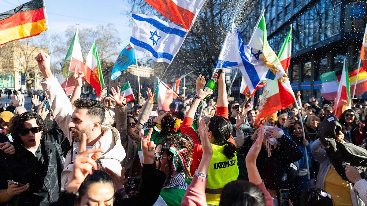 Ein dpa-Fotograf berichtete, dass die Demonstranten unter anderem die Flagge des Iran aus der Zeit vor der Islamischen Revolution, aber auch die Flaggen Israels, der USA und der EU schwenkten. Die Stimmung sei fröhlich gewesen, es sei gejubelt und getanzt worden. Auf einem Banner wurde der Sohn des 1979 gestürzten Schahs von Persien, Reza Pahlavi, gezeigt.