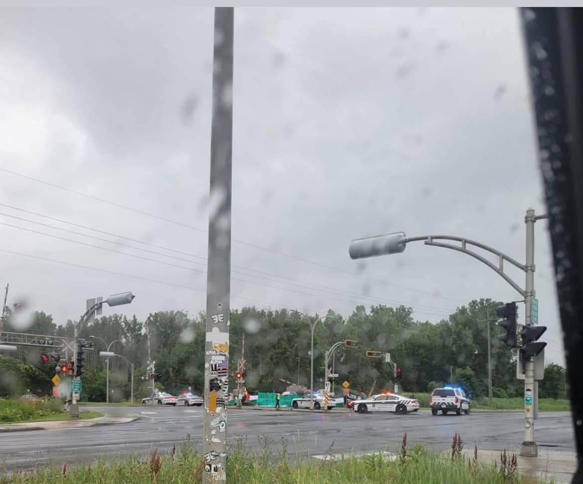 Une trentaine de militants propalestiniens ont pris d’assaut le chemin de fer à Saint-Bruno-de-Montarville, sur la Rive-Sud de Montréal. Ils en bloquent une portion à l’intersection des boulevards Seigneurial et Sir-Wilfrid-Laurier depuis environ 10h, samedi matin.
