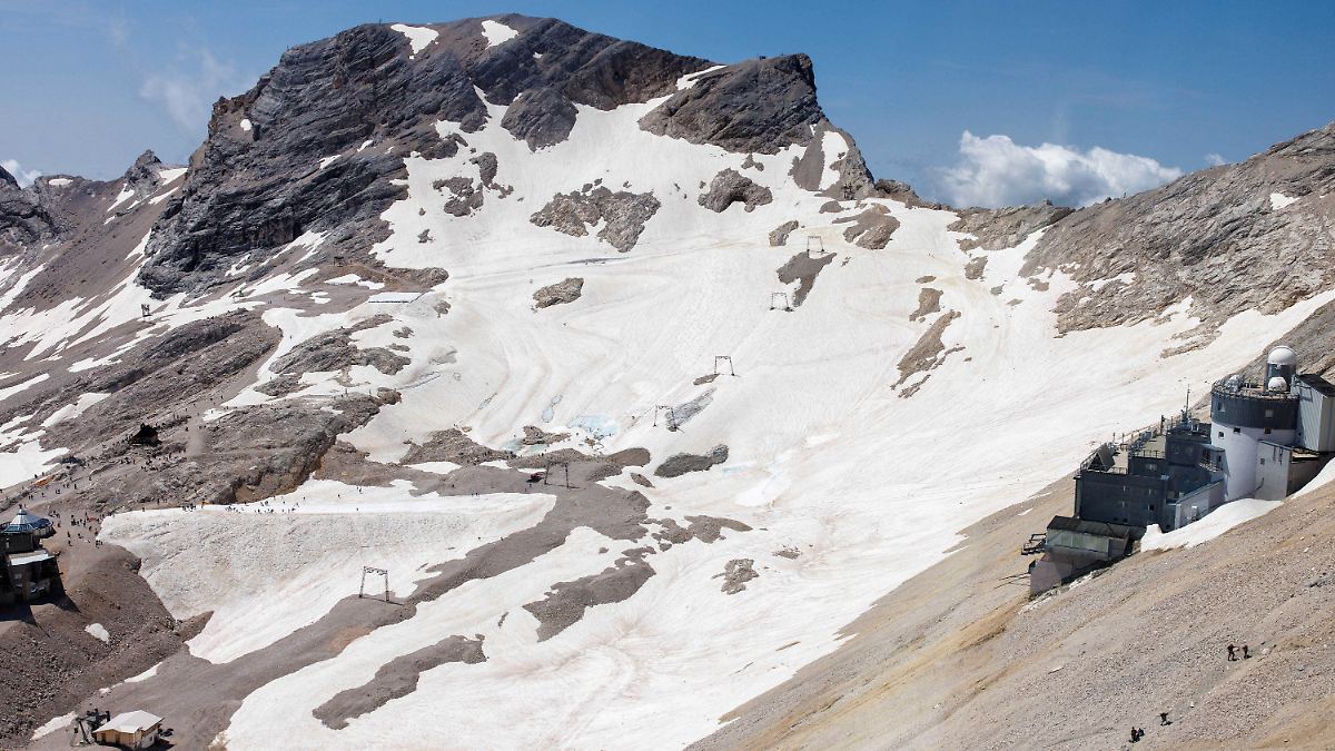 Gletscher gibt es in Deutschland nur in Bayern, und zwar derzeit noch vier davon - Nördlicher Schneeferner, Höllentalferner, Blaueis und Watzmann. Zwischen 2023 und 2025 schmolz deren Eisdicke demnach jährlich im Schnitt um 1,60 Meter - das war doppelt so viel wie in der Periode von 2018 bis 2023, in der die Gletscher durchschnittlich 0,80 Meter dünner wurden.
