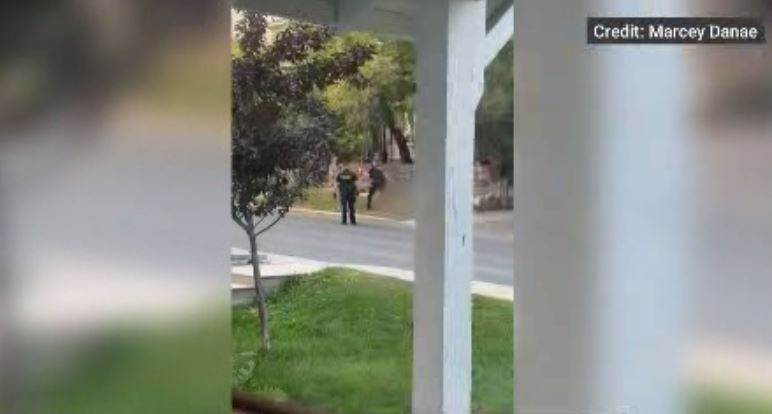 The video posted on social media appears to show two OPP officers near a deer that’s sitting down. One of the officers holding an axe takes a swing at the deer’s head. The officer loses grip of the axe which then goes flying into the street. The video appears to be taken from inside of a residence across the street.
