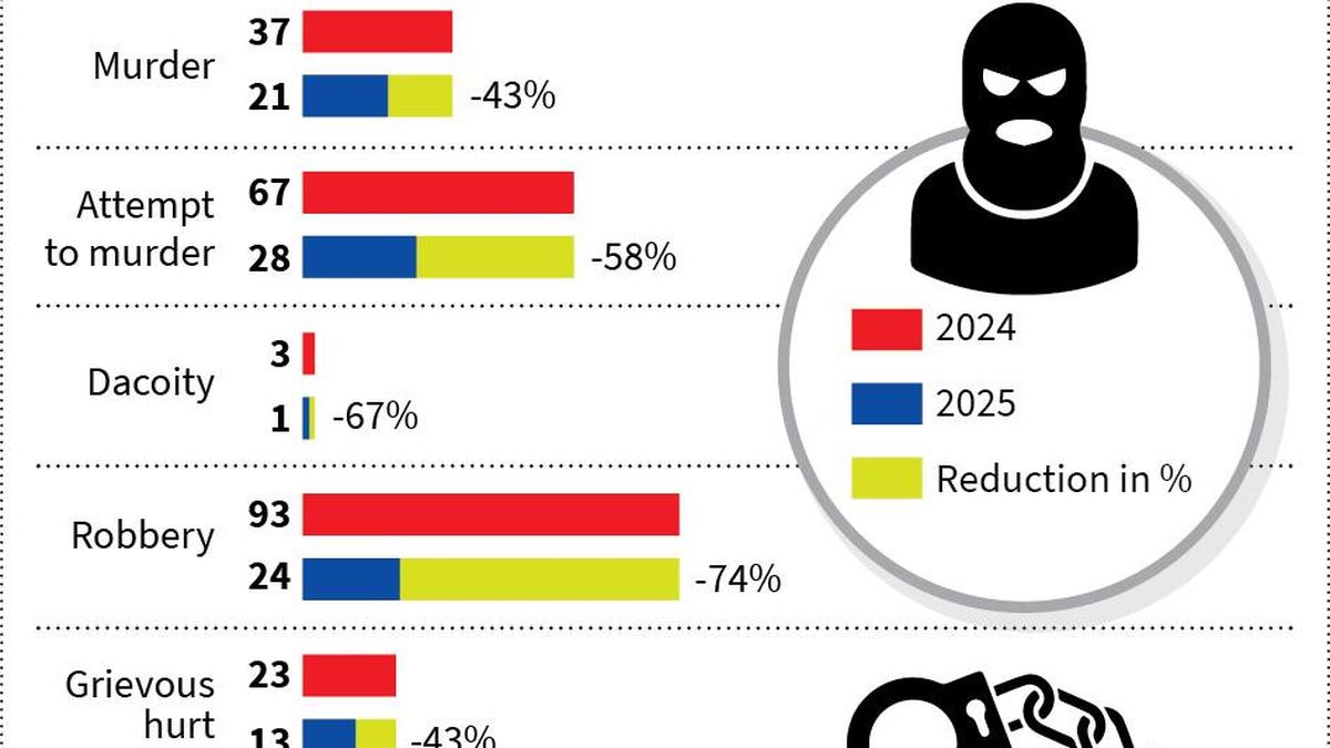 Drastic drop in grave crime cases in Madurai City in 2025The HinduWednesday, December 31, 2025 04:53:32 PM UTCDrastic drop in grave crime cases in Madurai City in 2025Read full story on The HinduShare this story on:-