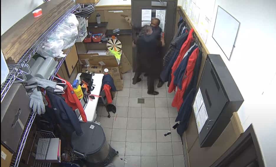 Dans une vidéo de surveillance, on peut voir les deux hommes s'affronter.