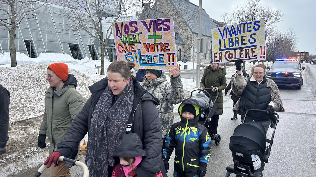 C’est au rythme des percussions et des sifflets qu’une centaine de manifestantes ont investi le parc des Vétérans et les rues de Rimouski, dimanche après-midi, à l’occasion de la Journée internationale des droits des femmes. C’est important de briser le silence, affirme Caroline Potvin, militante et organisatrice du rassemblement. Selon elle, le bruit est un outil nécessaire pour dénoncer les violences genrées. En région, même si on est moins, on est capables de se faire entendre. On garde beaucoup le silence, par exemple au niveau de nos agressions, au niveau de la violence conjugale, des violences sexuelles. On prend la rue une fois par année, ben qu'on se fasse entendre, c'est vraiment important! «Normalement, on milite assez silencieusement», explique l’organisatrice, Caroline Potvin. «Cette année, il va y avoir du bruit.» Photo : Radio-Canada / Camille Lacroix