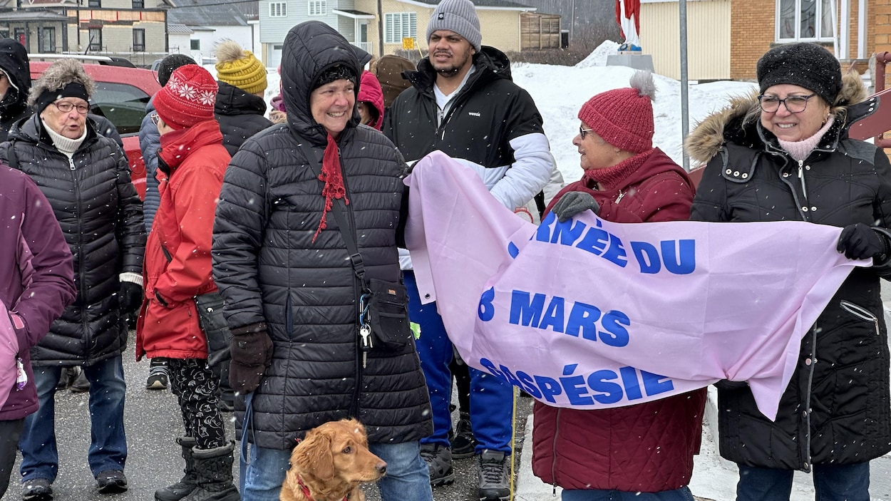 Si la Journée internationale des droits des femmes a été soulignée dans le monde entier dimanche, elle revêtait une certaine importance en Haute-Gaspésie, où les femmes ont encore de la difficulté à donner la vie. Une marche avait lieu à Saint-Maxime-du-Mont-Louis pour faire valoir les droits et les besoins des femmes dans une région où les services en obstétrique sont fréquemment interrompus. Sous un temps gris, une cinquantaine de personnes ont répondu à l’invitation de la mairesse, Annie Bélanger. Elle est d’ailleurs la première femme à avoir pris les rênes du village et son conseil municipal est presque exclusivement féminin. Je voulais qu’il y ait une mobilisation pour les femmes de la haute Gaspésie parce que nous aurons une bataille à faire dans les prochains mois et années. Il faut, à un moment donné, se faire entendre comme femme de la Haute-Gaspésie, défend-elle. C'est différent d'être une femme en Haute-Gaspésie que d'être une femme à Montréal. C'est difficile ici d'avoir d'avoir des services obstétriques et ça, il faut que l'État le reconnaisse.