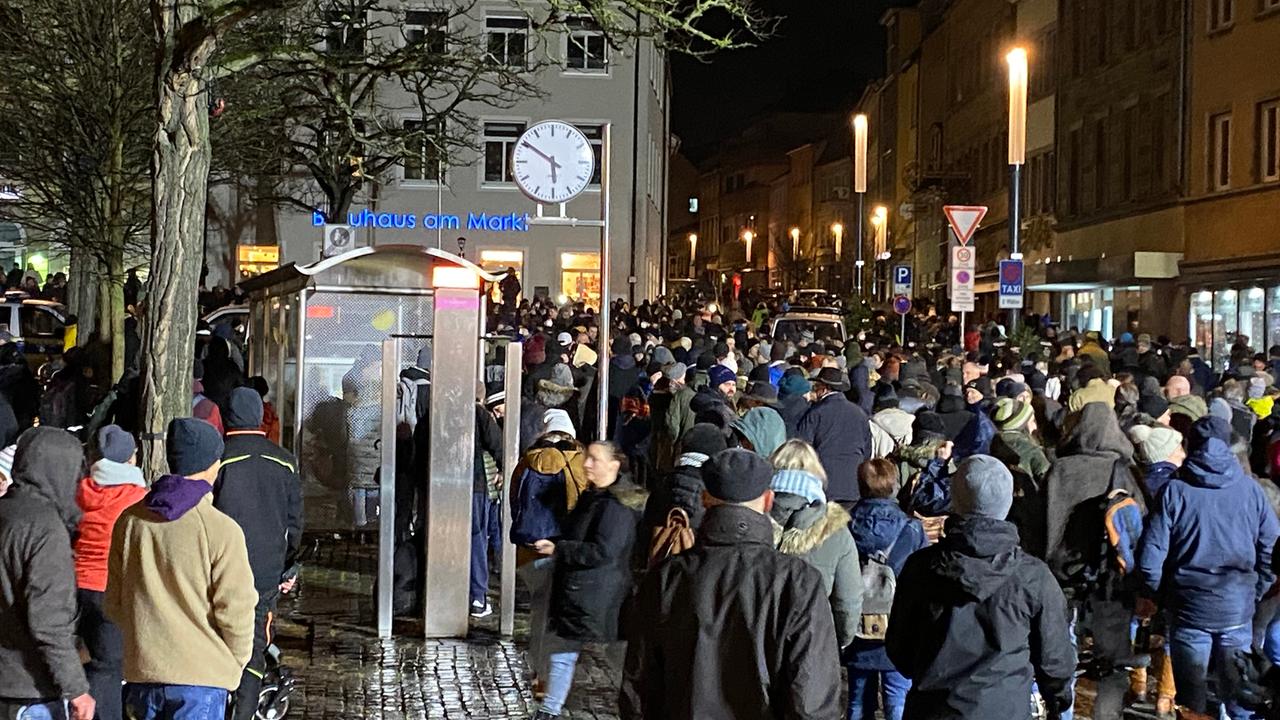 Mehrere hundert Menschen haben in Schweinfurt unangemeldet gegen Corona-Maßnahmen demonstriert. Es kam zu Zusammenstößen mit der Polizei.