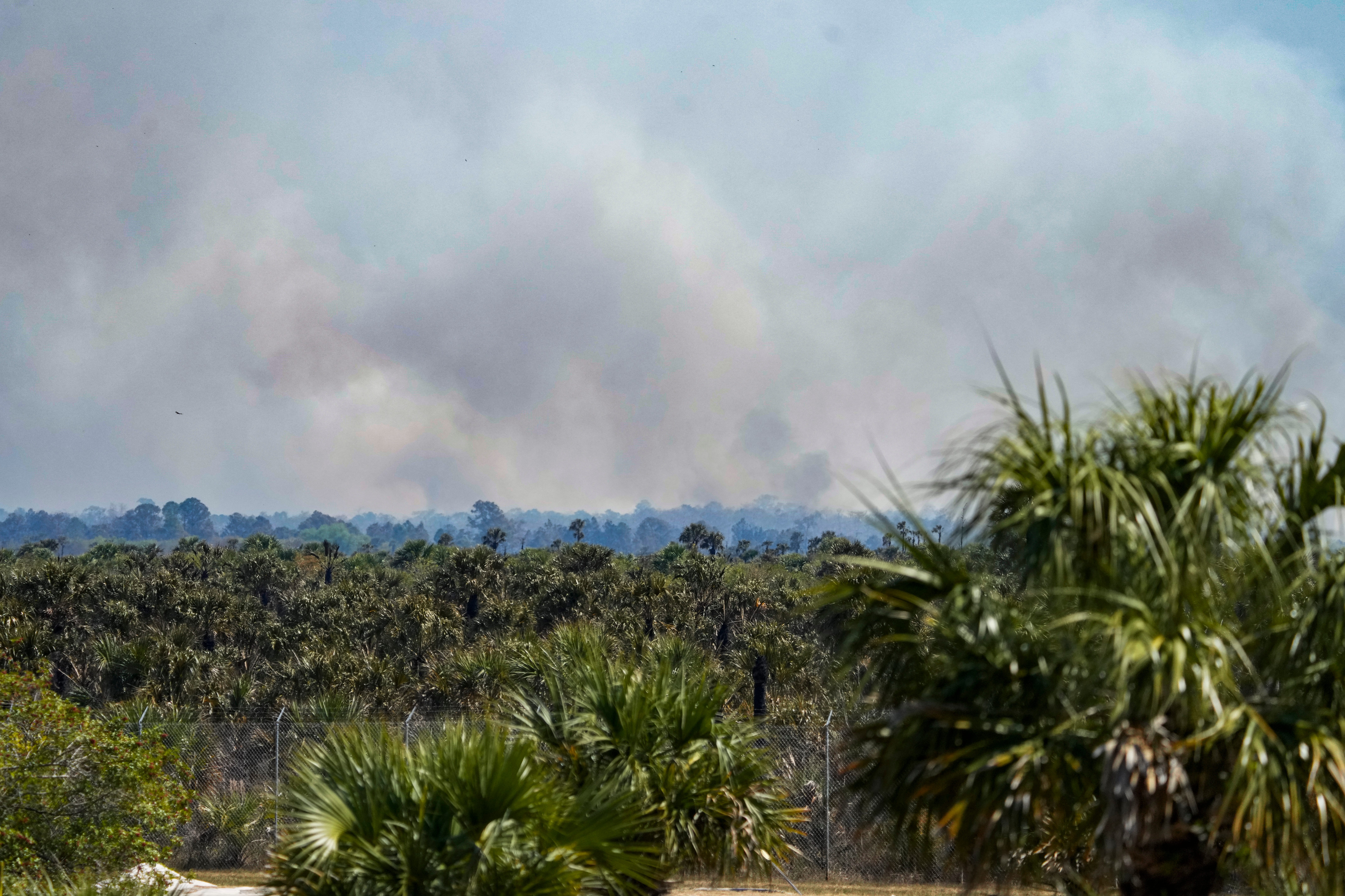 Fire crews are battling a wildfire in South Florida that has grown to nearly 25,000 acres on Wednesday, Feb. 25, as the blaze burned near the state's mass detention center known as "Alligator Alcatraz" and caused hazy conditions for surrounding areas.