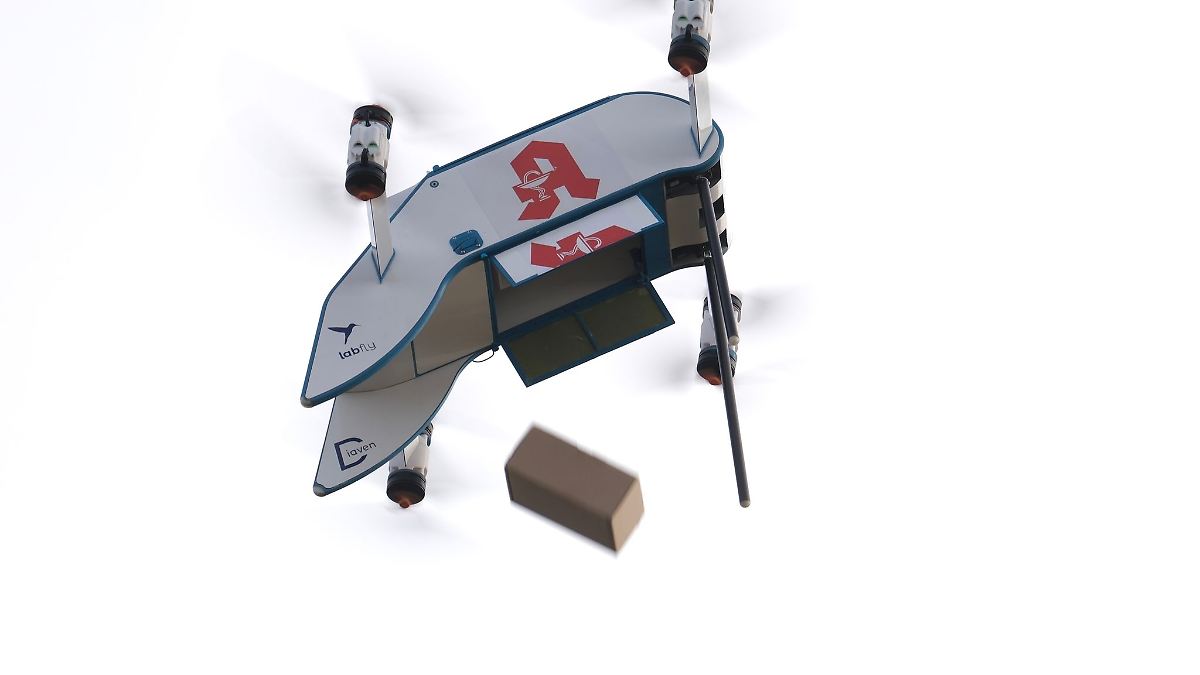 Die Medikamente sollen laut Fischer über eine App bestellt werden können. In einer nahegelegenen Apotheke werden sie dann besorgt, verpackt und in die Drohne geladen. Insgesamt kann die Drohne rund ein Kilo Last transportieren. Aus zehn Meter Höhe wird das Paket dann an zuvor festgelegten Orten abgeworfen.