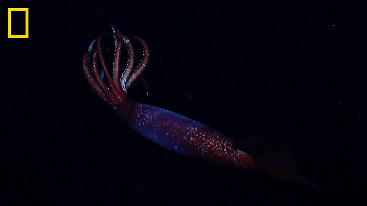 Forschende der National Geographic und Rolex Perpetual Planet Expedition haben im Südpolarmeer eine wissenschaftliche Sensation erlebt. Erstmals wurde der seltene Tiefsee-Riesenkalmar Gonatus antarcticus lebend gefilmt. Die Aufnahmen gelangen bereits am ersten Weihnachtsfeiertag 2024 mit einer ferngesteuerten Unterwasser-Drohne des Schmidt Ocean Institute. Das Tier wurde in rund 2150 Metern Tiefe im Weddellmeer gesichtet. Zuvor war die Art nur durch Überreste in Fischernetzen oder aus Mägen von Meerestieren bekannt.