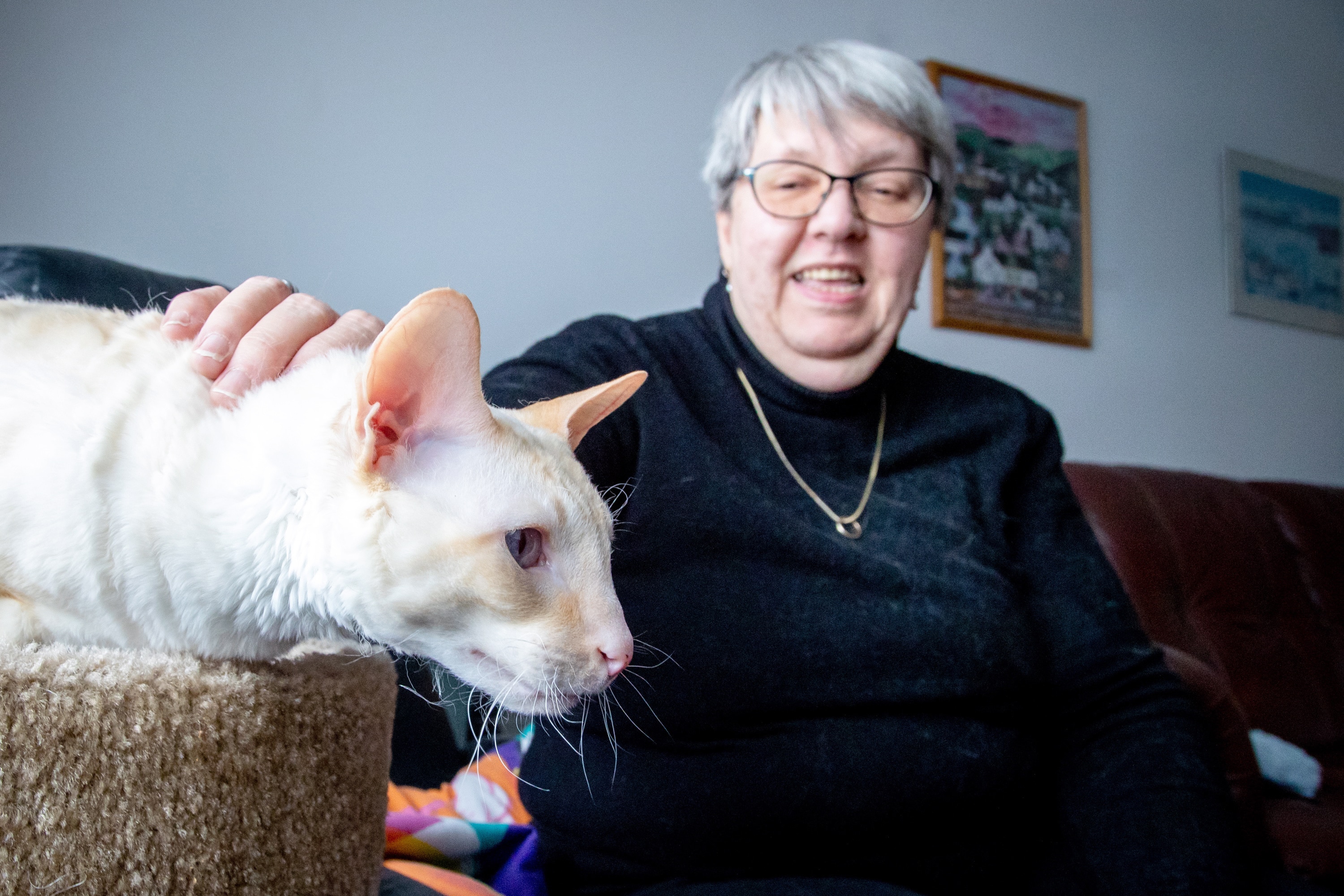 À la suite du décès de mon yorkshire, Einstein, je désirais avoir un autre animal, mais je ne voulais pas m’embarquer trop non plus. Une amie avait trois Rex, des chats vraiment sociables, et je me disais que ce pourrait être intéressant pour moi, avec mes clients que je reçois à la maison (en relation d’aide pour le deuil animalier). J’ai eu le malheur de le dire à cette amie qui m’a trouvé un Rex dans l’heure suivante. Lily May habitait avec un couple de personnes âgées depuis un an, mais ils ne pouvaient plus la garder pour cause de maladie.